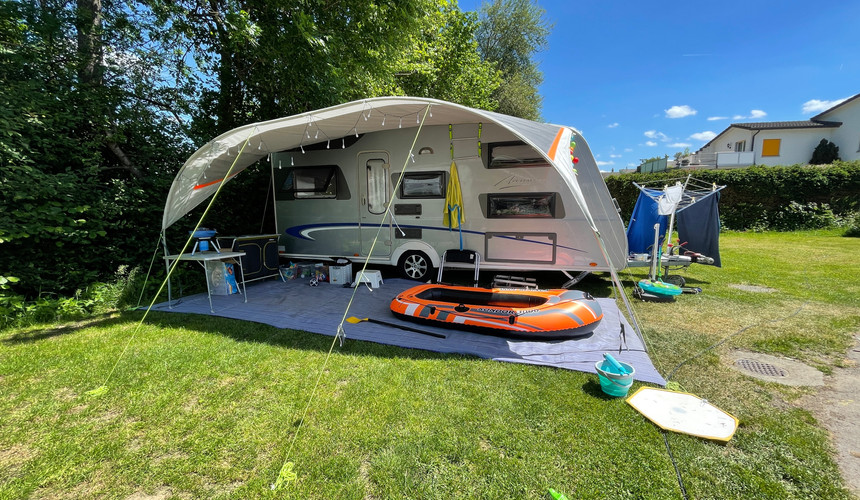 Ab 14.00 Uhr können wir auf den Campingplatz, also treffen wir uns gleich vor Ort. Olis und wir treffen uns bereits in Würenlingen und fahren dann direkt nach Mosen, wo unser Camp aufgebaut wird.